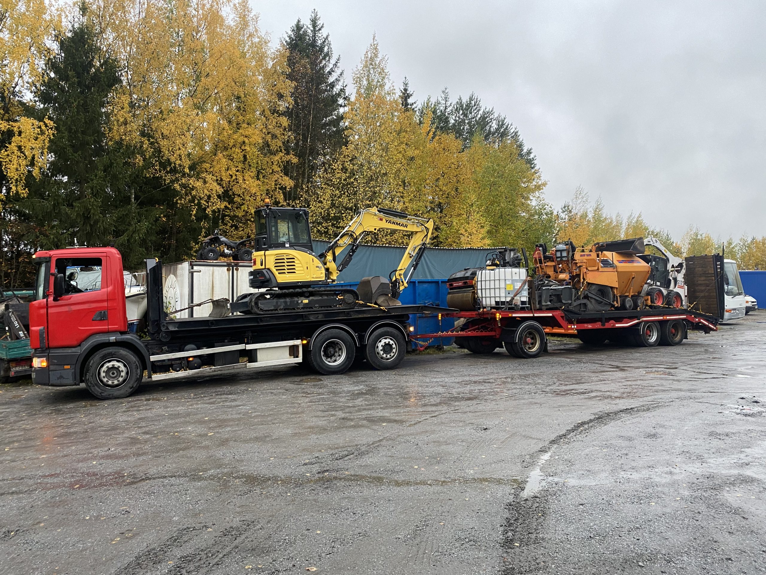 - 10ton pyörä-alustainen kaivinkone & peräkärry asfalttipohjakalustolla